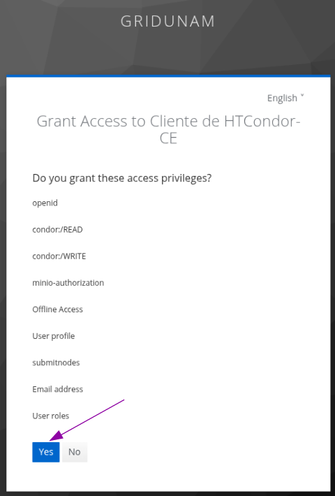 Entonces, se despliegan las características que GridUNAM le permite. Simplemente presione el botón [Yes], vea la Figura 3 .